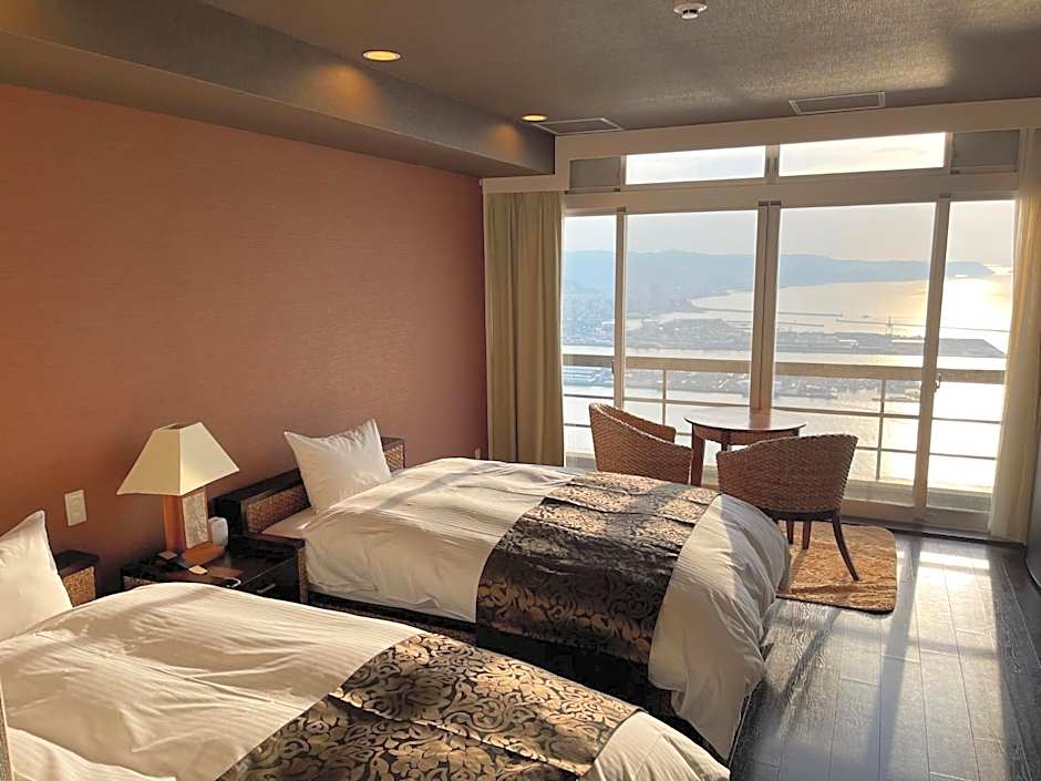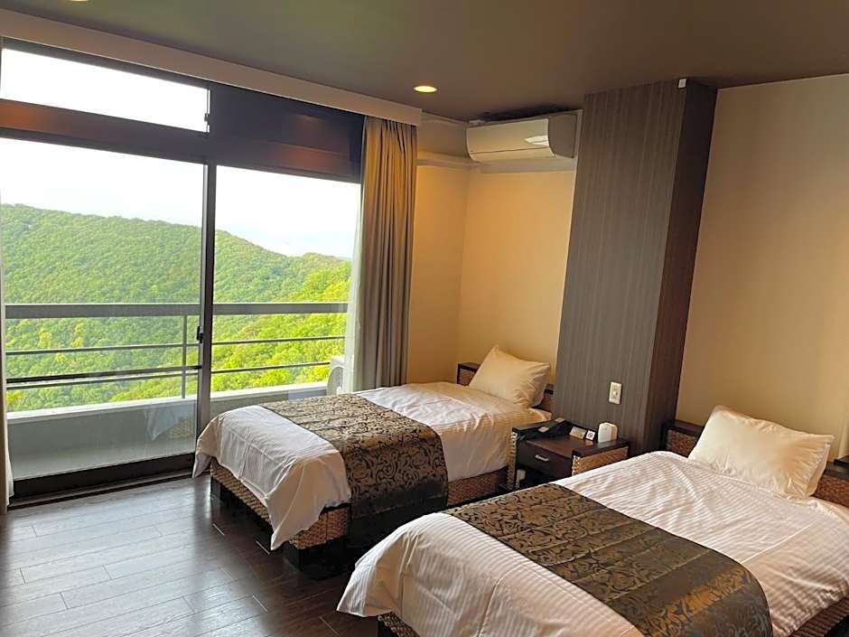 The spacious twin room features air conditioning, tatami, as well as a private bathroom boasting a shower and a bidet. The twin room offers a wardrobe, a safe deposit box, an electric kettle, a flat-screen TV, as well as mountain views.